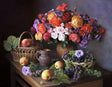 Still life with autumn bouquet and fruits Poster och Canvastavla