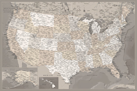 Highly detailed map of the United States, Lucille Poster och Canvastavla
