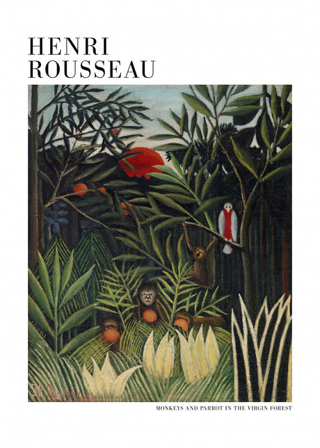 Monkeys And Parrot In The Virgin Forest Poster och Canvastavla