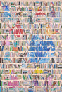Denna poster kommer att få ditt hem att kännas som ett mysigt café fullt av litteratur och inspiration. De färgglada bokryggarna är staplade på varandra i en rörig och oorganiserad mosaik som skapar en unik och intressant atmosfär.