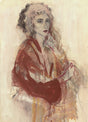 Med dess traditionella och sofistikerade stil kommer denna målning säkerligen att bli ett vackert tillskott till din inredning. Den detaljerade studien av en kvinnas ansikte i vackra rosa och röda toner gör verkligen att bilden sticker ut.